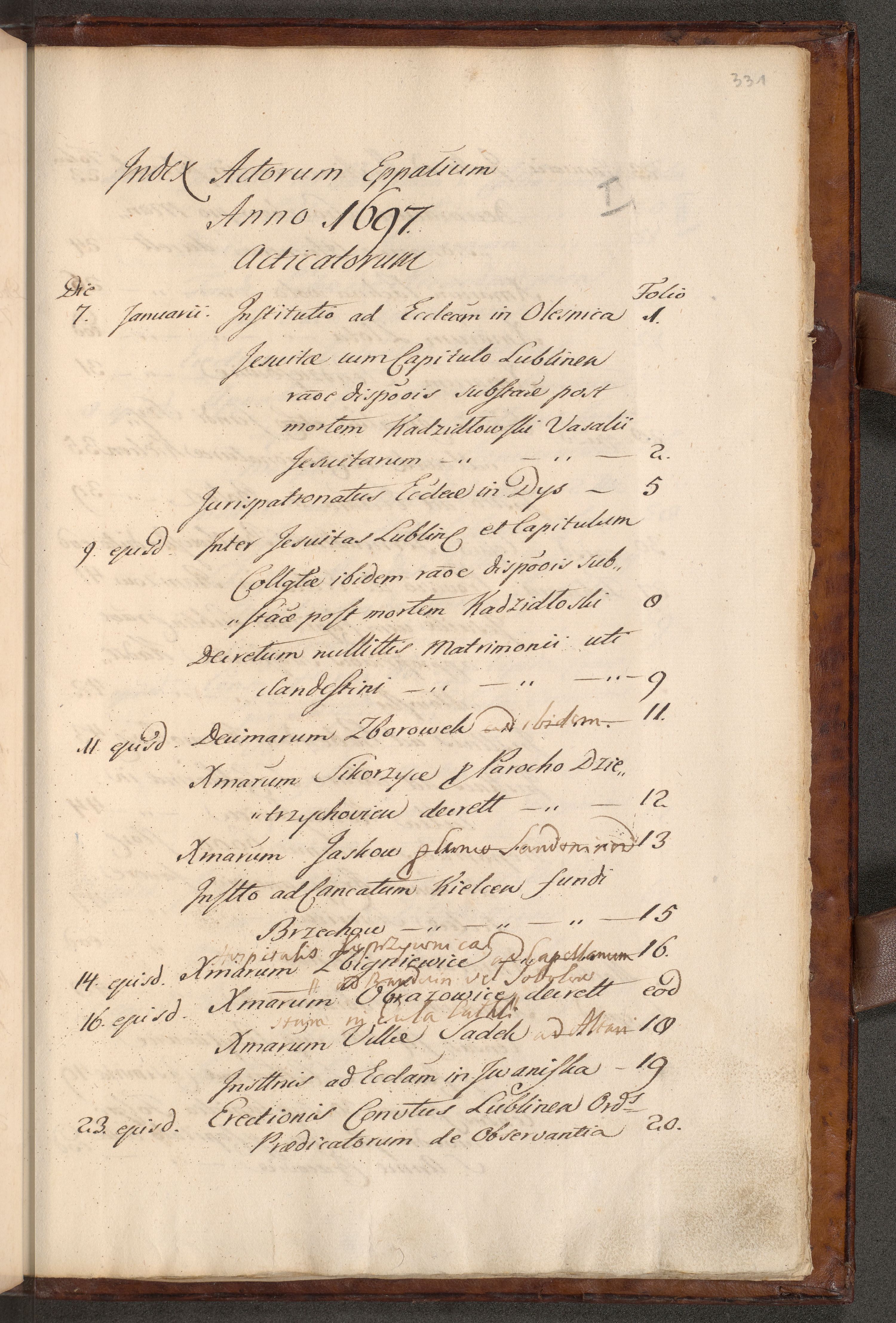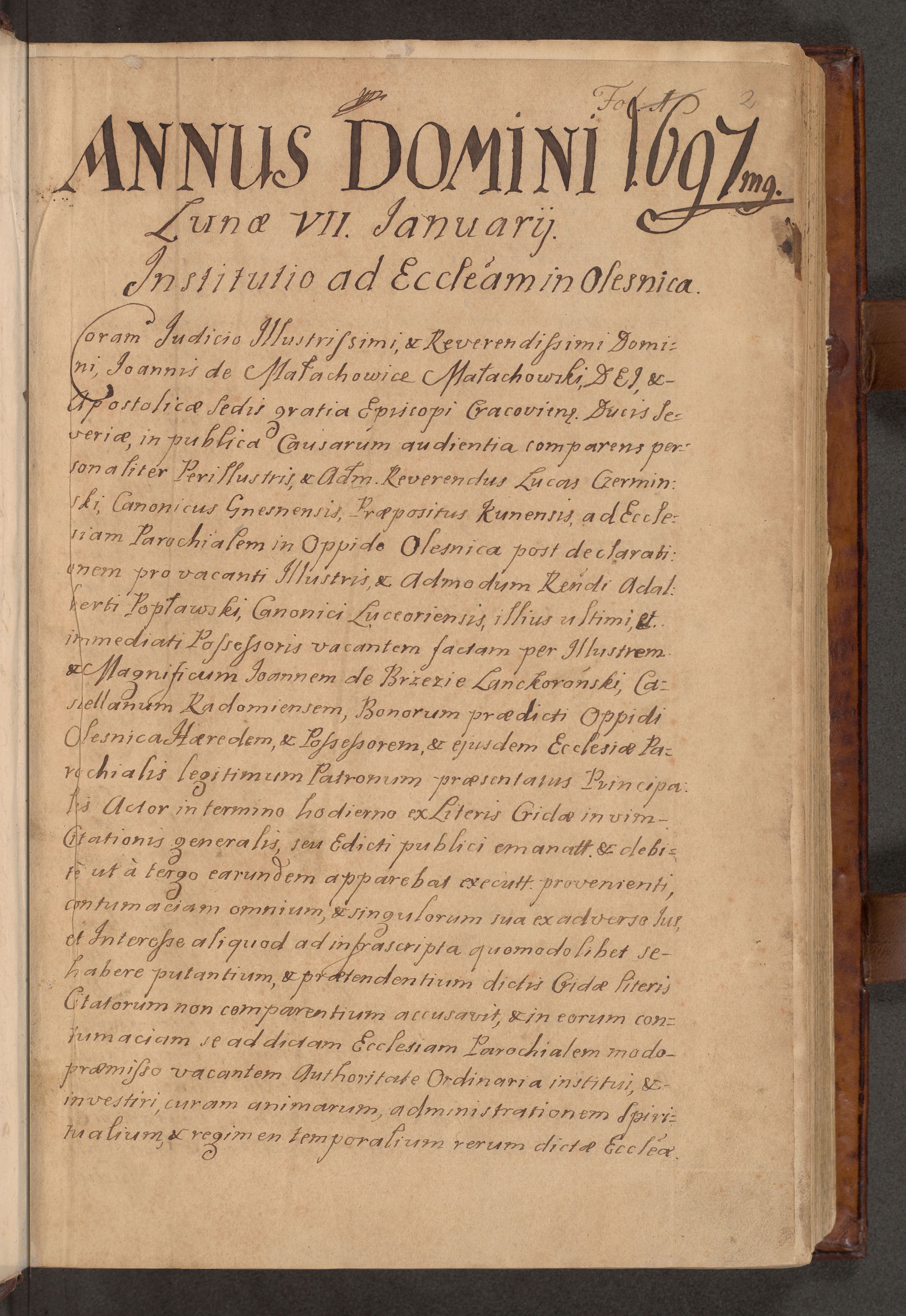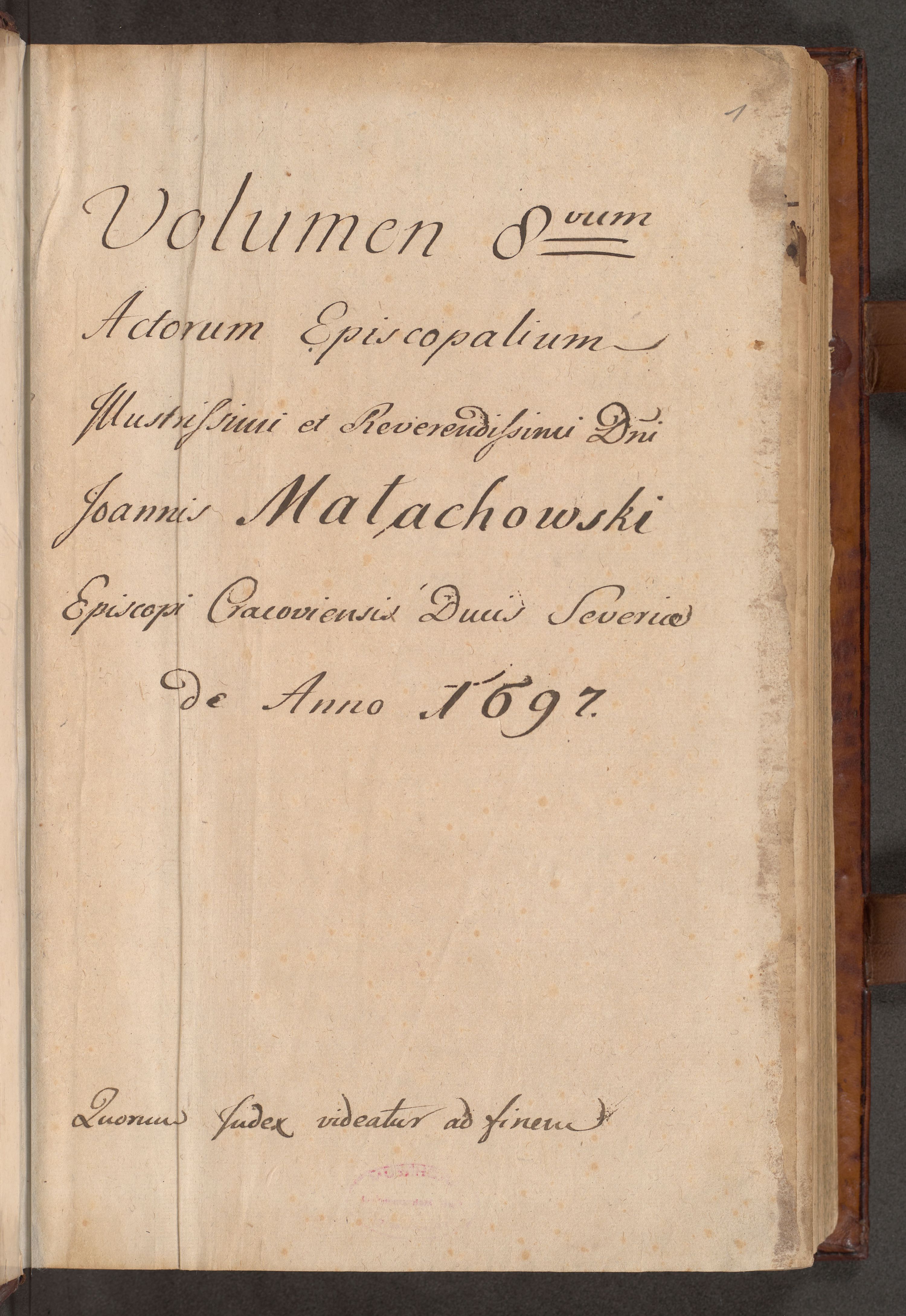 Volumen VIII actorum episcopalium R. D. Joannis Małachowski, episcopi Cracoviensis ducis Severiae de anno 1697, quorum index videatur ad finem